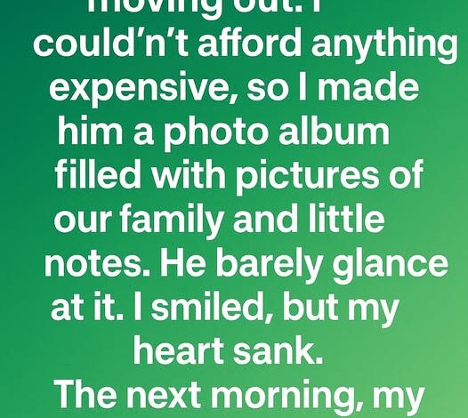 When I handed it to him the night before he moved, he barely glanced at it. He muttered a quick thank you and returned to boxing up his things. I smiled to hide the sting — I didn’t want him to feel guilty. But as I walked back to my room, the disappointment settled like a quiet ache. I wondered if I had misjudged what a grown young man valued. Maybe keepsakes didn’t matter anymore. Maybe my memories belonged only to me now.