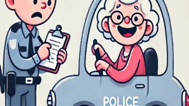 An elderly woman named Margaret was pulled over by a police officer for speeding!