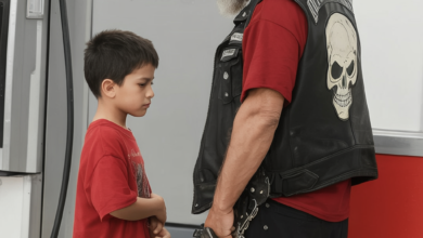 I was pumping gas at a Shell station late that night, my leather vest covered in skull patches, faded military insignia, and grease stains from the road. People usually gave me a wide berth when I looked like that—my beard unkempt, tattoos showing under the fluorescent lights, my Harley rumbling…